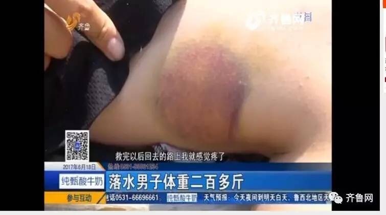 苑文龍父子英勇救人,造成腿部多處淤青