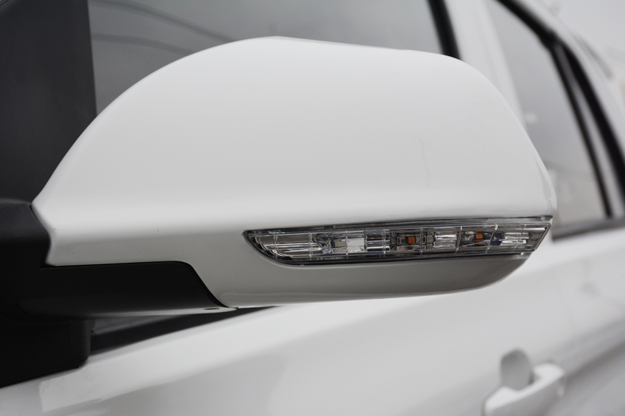 反光鏡同樣也設(shè)置了LED條形轉(zhuǎn)向燈,能夠起到很好的轉(zhuǎn)向警示作用,可折疊的設(shè)計也增加了車輛的通過性。